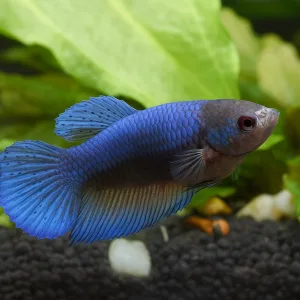 At Aqua Design, we offer a wide selection of healthy Betta fish, including rare varieties like the black half-moon Betta, known for its stunning appearance and unique fin shape.
