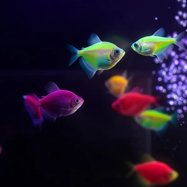 Fluorescent Tetras—often referred to as GloFish Tetras—are genetically enhanced tetras that display vibrant, glowing colors like electric blue, fluorescent green, and bright pink. Their radiant bodies shimmer under LED lighting, especially in planted aquariums or tanks with dark substrates.