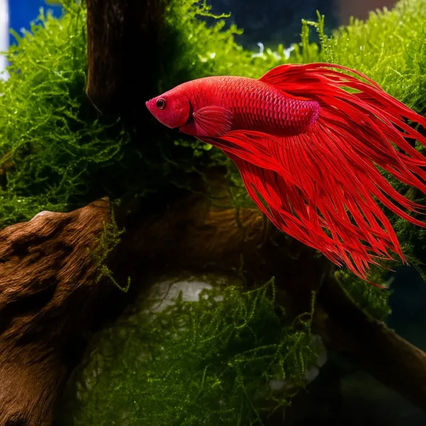 A 5-gallon tank or larger is ideal for Crowntails. Use a secure lid to prevent jumping, and opt for gentle filtration to avoid stress on their delicate fins. Decorate the tank with live or silk plants, caves, and floating leaves for comfort.